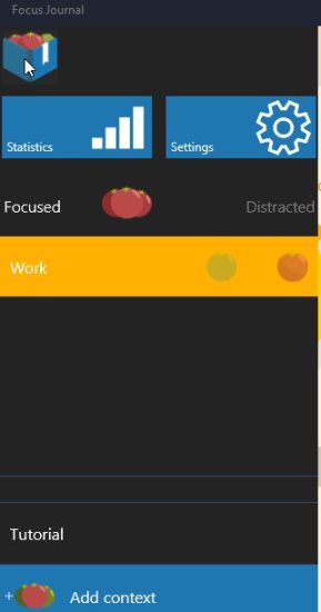 Focus Journal is a nice app to help you improve your focus on tasks. Slowly and gradually you will learn how to focus more on the task and not leave it for later. The more red tomatoes in front of a task or context will show how your efficiency has increased. While the green tomatoes show how many times you lost your focus while working on a task. So add a task, set your timer and see how many red or green tomatoes you get.