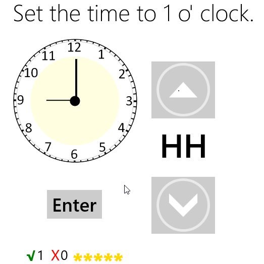 Features of this Windows 10 time learning app for kids: