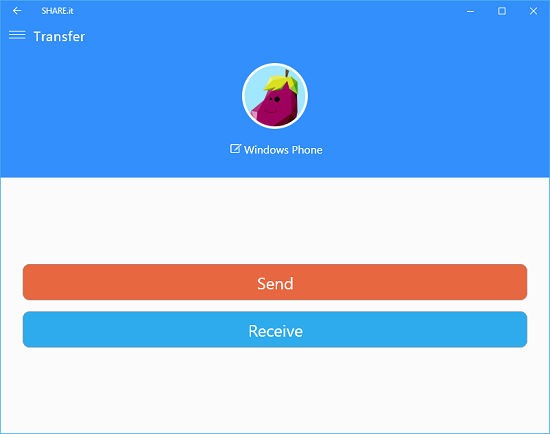 Next, you will be taken to the main interface itself. Herein lie the methods that you can employ to send and receive files on your Windows 10 device.![]()