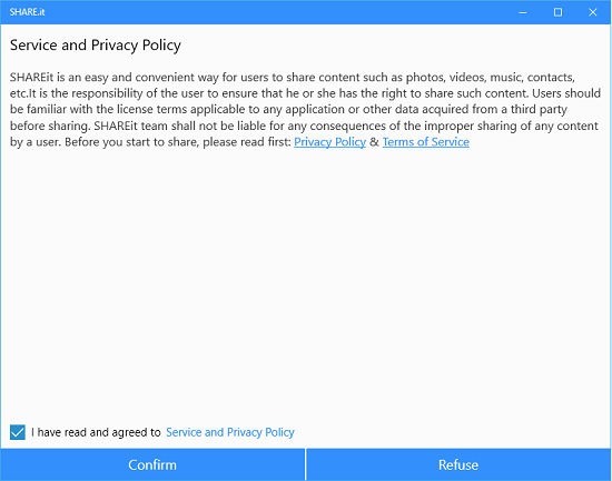 When the app itself is installed and launched, a short and straightforward license agreement appears on the screen. Simply accept the terms by clicking on the check box, and selecting the Confirm button.