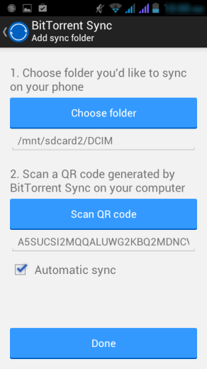 Step 2: Run BitTorrent Sync app on your smartphone and select a location for sync folder. After this, click on Scan a QR code button. Now you have to scan the computer code to establish connection between your phone and PC.