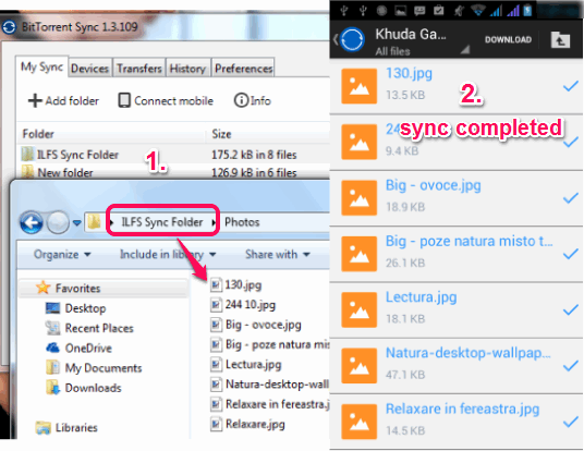 Step 3: Once the connection is established, sync will start automatically, and sync folder will come to your mobile with all files. If the destination folder chosen by you in smartphone already contains some files, then those files will also sync to your PC.