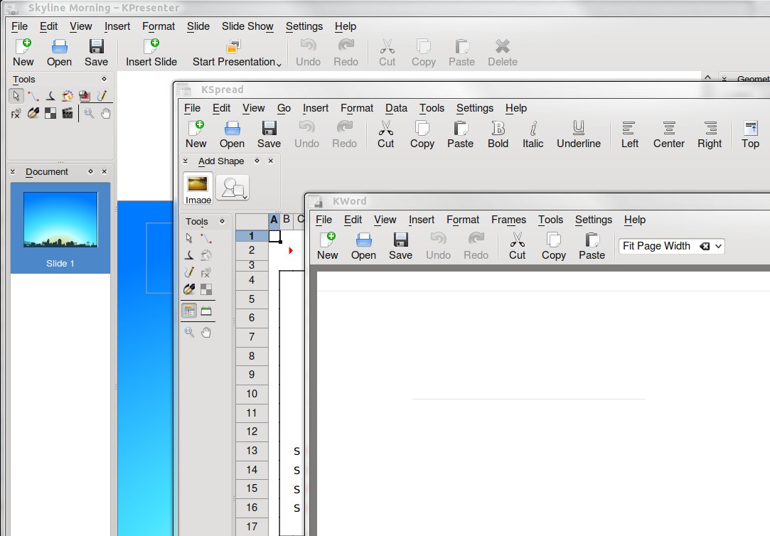 All of the tools offered by the KOffice will work just fine in GNU/Linux, especially if you are running Kubuntu, free Ubuntu based KDE distribution. Images seen above are not Windows if that’s what you were thinking, this actually GNU/Linux.