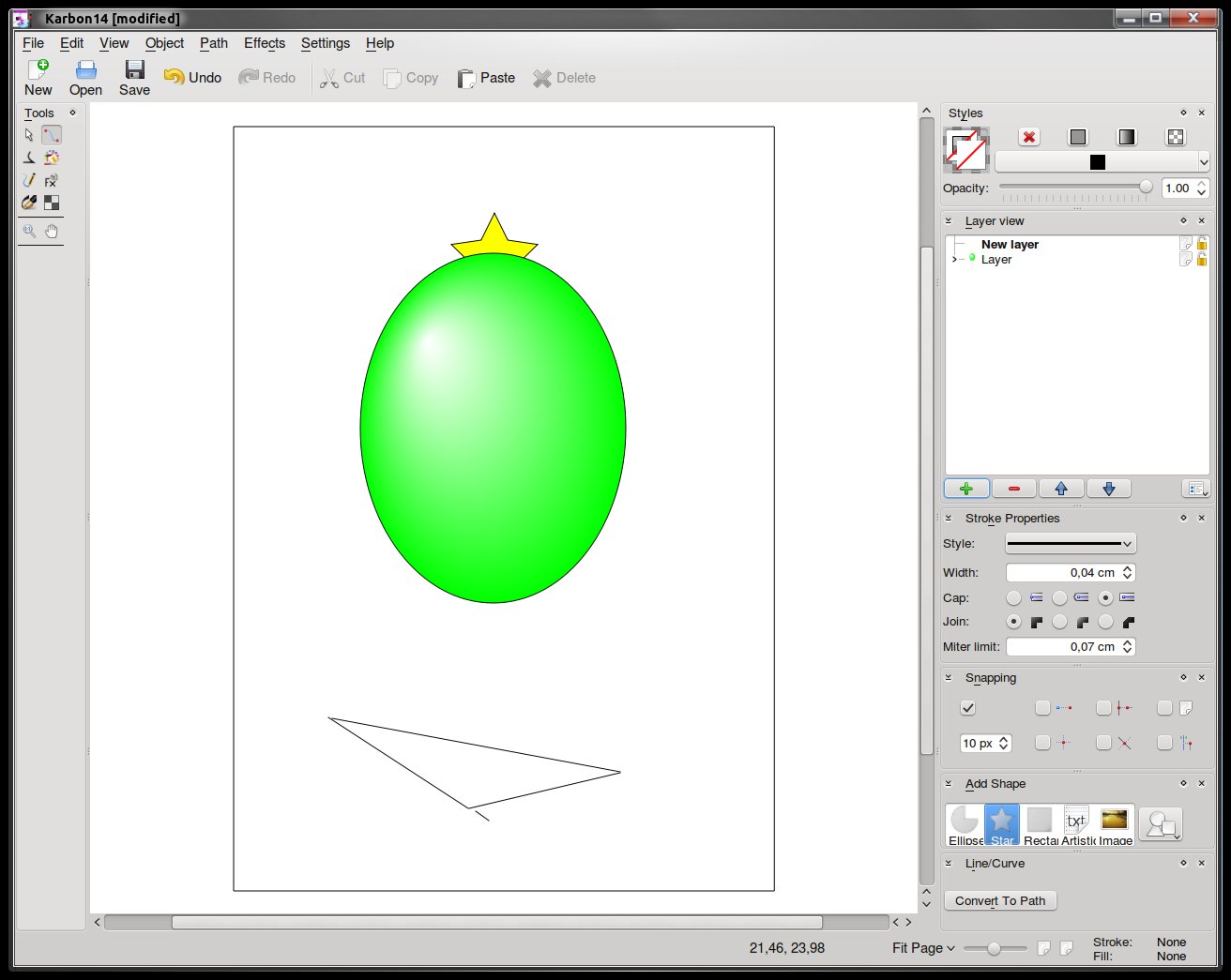 You might also find Karbon under the name Artwork, but both of these can be used for the same thing, creating graphics. Notice in the right sidebar that layers are supported, next to a lot of other useful tools.