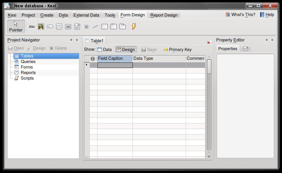 For the most part Kexi only works with it’s own native formats, and there’s no support for database files from the Windows world, Office to be more prices. This is drawback but only in the sense that you won’t be able to open databases from Office, you can still create new projects inside Kexi, with new databases, see image above.