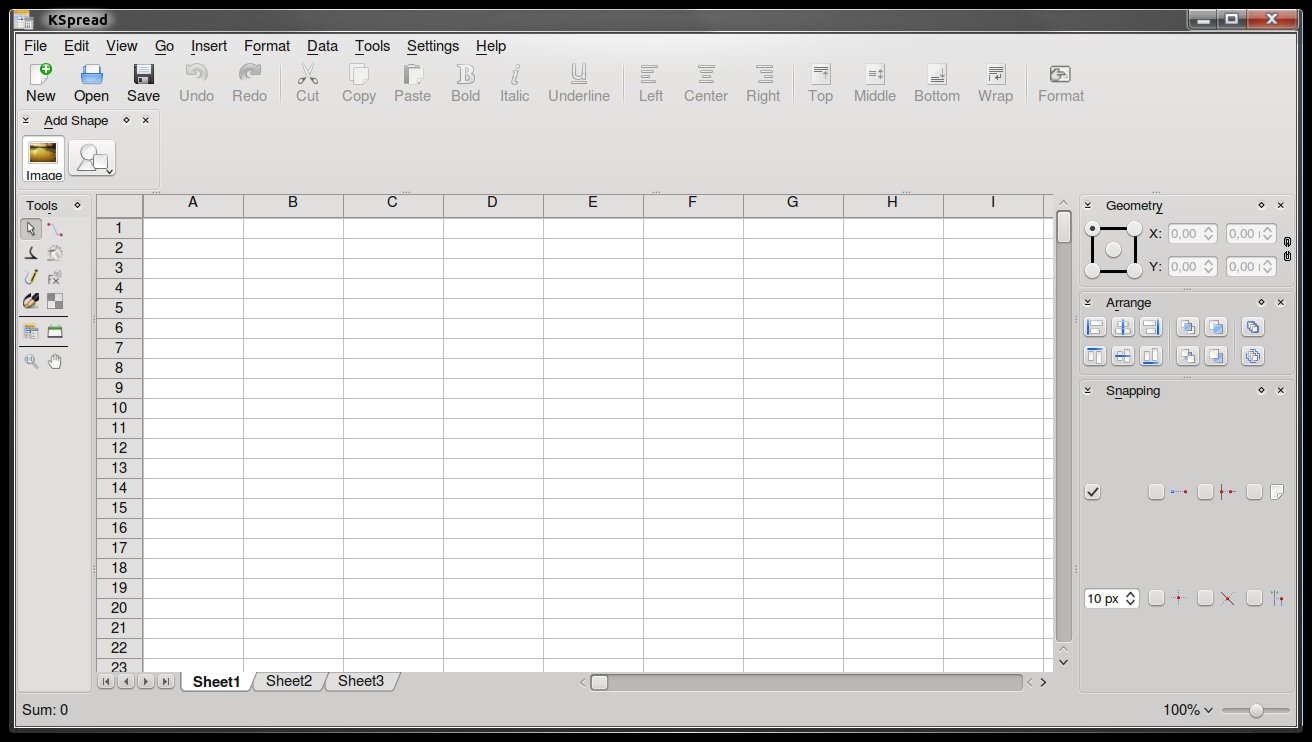 A major drawback of KSpread would be that it doesn’t have formulas or functions, you cannot create a cell where a certain calculation will be made, but other than that everything is the same. Interface is again new, but if you decide to use KSpread, you’ll get used to it quickly. Use KSpread if you don’t need formulas, if you do need functions, then you’re gonna have to use something else.