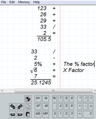 This tape calculator does the operations of any standard desk calculator. So what makes it different from other calculators which also provide the ability to do scientific calculations? The biggest difference is that you can save the whole calculation as a file, which can be reviewed and modified later. Also, any change in the input values gets reflected immediately in the result.
