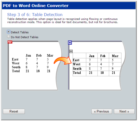 Step 3: This is also a crucial step in which you can enable option to Detect Tables. Tables won’t be detected if you have set Layout and Formatting in Exact mode.