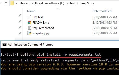 Clone the GitHub repository of SnapStory and then extract it to some folder of your choice. After that, open command prompt or PowerShell window in CMD mode there. After that, in the command windows, run this simple command to install the missing dependencies of SnapStory.