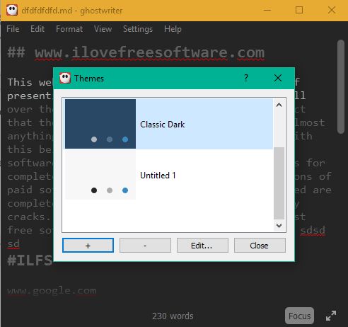 - By default, light theme is activated, but you can select dark theme using Settings. Apart from this, it also lets you create a customized theme with any of your favorite text color, markup color, spelling error color, etc.