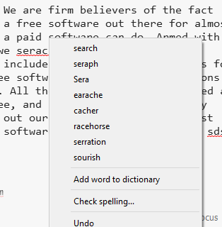 While writing on its interface, it also detects spelling mistakes (if any) and highlights them. You can right-click on a particular word to access suggestions and add a word to the dictionary.