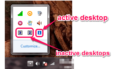 It silently runs in your PC’s system tray and help to switch between desktops easily. You can either use its tray icon to switch between desktops or can use hotkeys.