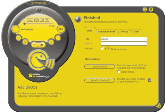 In addition, you can also record comments on your photos and send them. This free voice messaging software has an option to spice-up the voice message with additional sound effects. Speak-a-message works with browser-based email (web mail). This free voice messaging software has the ability to play-back recorded audio messages on common media players. You can also create slide shows of photos with audio at the background.