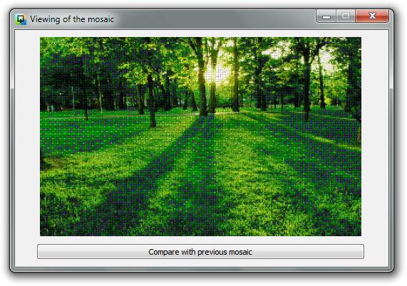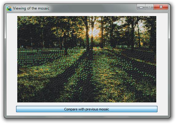 Here you have the Compare with previous mosaic button with which you can see the difference between original and processed image. If you want to tweak settings, click on the Advanced Settings box and change them accordingly to your desires. After tweaking, you will probably create a better mosaic like we did, see image below. We changed mosaic effect mode into Adaptive (because of the large number of tiles, now you can’t really see the difference between Fixed and Adaptive), moved Color Change to MAX and increased the number of tiles.