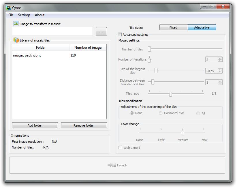 Qmos is a free image to mosaic converter which you can use to apply mosaic effect on images. It dissects image and photos using tiles which give images a very realistic mosaic effect. These tiles are basically other images, they are changeable, you can add folders with images and have a mosaic automatically created in just a few clicks. Qmos is very easy to use and in the same time, it’s also highly customizable.