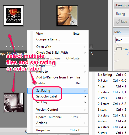 - You can give rating, set tag to multiple files together. Simply select files and right click to access Set Rating and Set Color Label option.