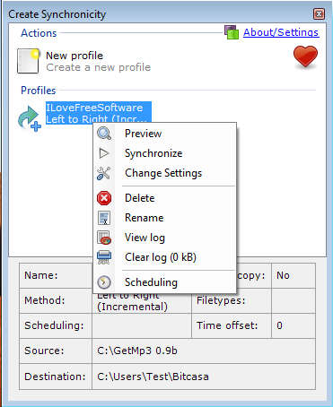 Backup jobs are called profiles in Create Synchronicity, and you can create them as much as you want, for as many locations that you want monitored. There are two ways of how you can use Create Synchronicity, you can either download the portable zip folder or an installer file. We’ve decided to use the portable version and everything went fine, we didn’t have any problem. Some of the more interesting features found in this free data backup software would be: