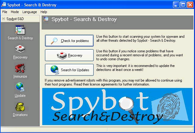 Spybot is a free anti-spyware and anti-adware. It detects spyware, adware, and other malicious software on your system, and removes that. Spyware Search & Destroy can detect and remove a wide range of spyware and malware successfully.