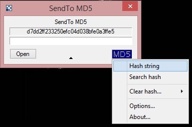 SendTo MD5 is a free MD5 hash generator and checker software. It lets you add MD5 option to context menu, so that you can generate MD5 of any file just by right clicking on it. You can quickly generate MD5 hash value of any file with just a click or simple drag and drop method. Then, you can check the MD5 values of two separate files. And what’s more, you can also quickly generate MD5 hash value of strings and then compare these strings’ hash values for integrity check proposes.