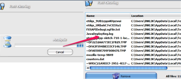 - Fast clearing Button: It is used to quickly search for the junk files present in main folders. Hit this button and a scan will start. After completing the scanning process, all the temporary files including Internet temporary, and recent files will be in front of you. All the scanned files can be removed in just one single click and your hard disk will be freed from unwanted files.