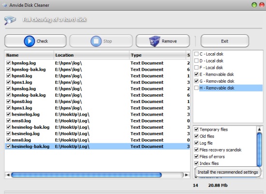 - Full cleaning of a hard disk: It is one of the important option available in Anvide Disk Cleaner that lets you select those hard drives that you want to scan for temporary files, old files, log files, errors saving files, backup files, and more. Not only just hard drives, you can even select removable drives to scan for the unwanted files. Thus, you can go for a deep cleaning process using Full cleaning of a hard disk button.