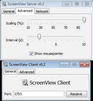 In the image above you can see the screenshot of both the Server and Client app. You need both of them in order to share screen with other computers. Images which are sent can be adjusted to some extent, their size and interval in which they are sent.
