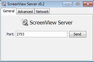The only thing that you need to decide on is the port number which is gonna be used on your computer. Write in the port number and then click on Send. If you want to change things like the size of the screen views which are being sent out, then you need to click on the Advanced tab. From there you can use the sliders in order to adjust the image scaling and interval in seconds in which the desktop images are gonna be sent.