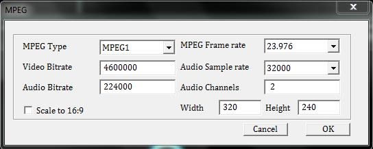 By default the secondary window is displayed at the top left corner, however you can change this position from the drop down located at the bottom left section of the program window. Also you can modify the output “MPEG” profile and change the properties of the output file including video bitrate, audio bitrate, MPEG frame rate, audio sample rate, audio channels, etc.