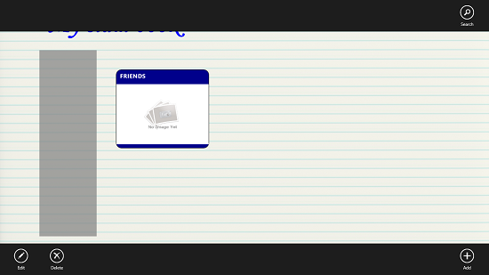 When you install and run the Slam Note Book app on your Windows 8 or 8.1 device, you will be presented with an interface wherein you will be able to add various categories. In the below screenshot, you can see the category friends along with the control bars of the app open.