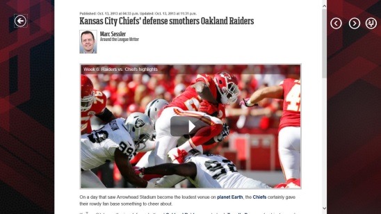 As it’s the official NFL app for Windows 8 devices, it has got great looking interface, with the ball’s leather as the background. The app is filled with different sized screenshots of game video, photos from the game and players, news stories in big tiles with big enough fonts. A really good use of fonts sizes, colors, team logs and other images. Which altogether makes the app a well designed Windows 8 app.