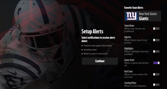 On launching the app you’ll be asked to login with NFL.com credentials. If you have got one, then you can simply login and use the app. It is basically for syncing your favorite team in the app and any existing subscription to the device. So, that you don’t have to set your favorite team and notifications related to team news, injuries in a team, breaking news, when to tune in and watch etc. But in case if you haven’t got account in NFL.com, still you can use the app in the same way. After passing through this Step you are asked to choose favorite team and then the alerts that you want to receive. So that the app will give you all the latest and reliable news stories of your favorite team.