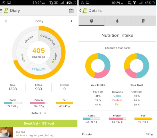 Using Lifesum Calorie Counter for Android: