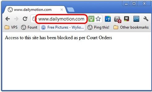 Today I was trying to access DailyMotion for my daily dose of streaming videos, and got a nice message “Access to this site has been blocked as per Court Orders”. I was trying to access it using Airtel ISP. Then I researched on the web, and found that many ISPs have started blocking this popular video streaming site. Not only that, another popular site “Vimeo” has also been blocked.