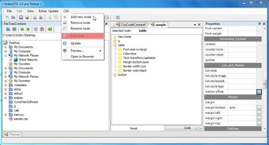 Arduo CSS Editor is a free CSS Editor with intuitive interface. It’s a simple and easy to use editor to create or edit CSS files. Besides providing normal CSS editing features, Arduo CSS facilitates syntax highlighting and testing CSS in external HTML pages.