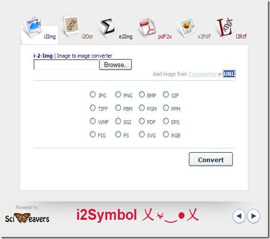 i2img is a free online image converter service. It has a very simple interface and the output is generated in a second. The screenshot above will provide you with the details of the formats supported by this service for conversion. This service also has the option of pasting the URL of the image to be converted. The best thing is that it is completely free, does not have limits for conversion. Also there is no sign up process. You can thereafter download the image file.