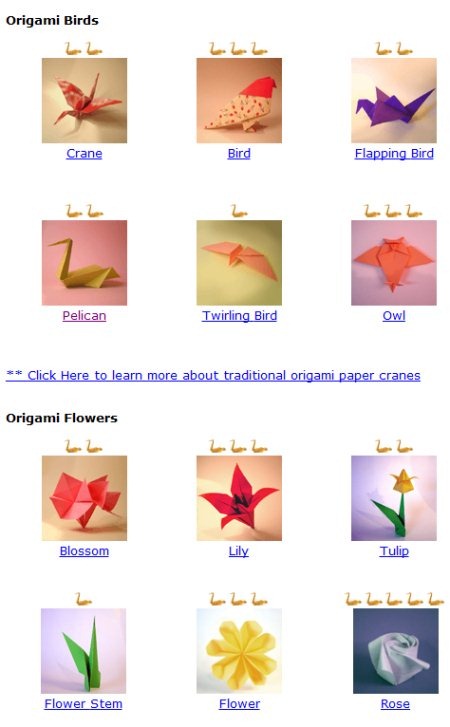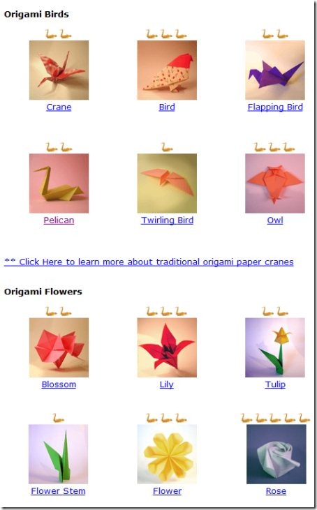 To view instructions for making a specific origami item, just click on the name of the item that you want to make. This will take you to a page where you will find step-by-step origami instructions to create the selected origami item. Go ahead and give your creativity a try.