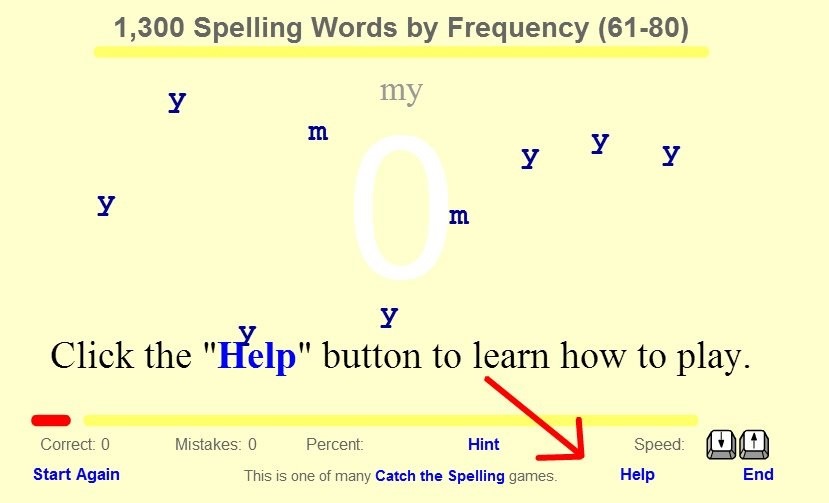 Catch The Spelling is next in this list of spelling websites. A lot about this websites can be judged from its name itself. The website aims to teach you spellings of different vocabulary words in an interactive manner. It contains lots of words divided into different categories and marked as easy, medium, or difficult. You have to pick up an option from any of the given categories and play the game. In the game, there is a word shown in the background, along with its definition, and letters for that word keep falling on your screen like raindrops. You have to catch the relevant letters and complete the word. For every wrong letter caught, one point is deducted from your score. As you keep forming the words the game continues to move forward, enriching you with lots of spellings in the process.