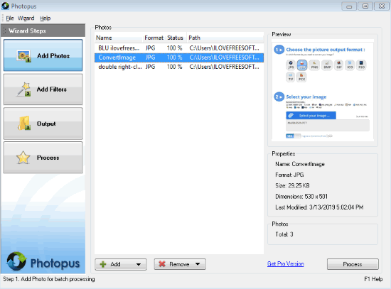 Here are 3 free software to bulk blur images. You can add popular or common format images like JPG, BMP, PNG, etc., and then process them to get the blurred images as output. The output destination or folder can also be set by you. Most of these software also help you see the thumbnails of input images.