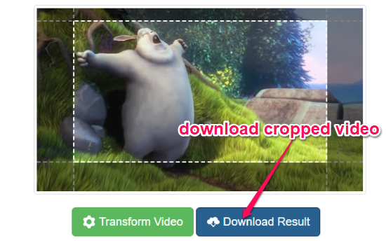 Step 3: When you click the “Transform Video” button, it will automatically crop the video to the selected area. Then you will see a “Download Result” button which you can click to export the cropped video.