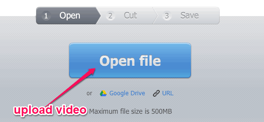 Step 1: After opening this website, it will prompt you to import a video that you want to crop. You can either choose a video from your PC, Google Drive, or by entering an URL. The maximum file size is limited to 500 MB.