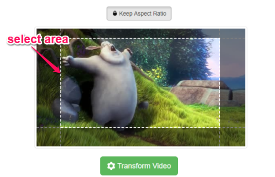 Step 2: After uploading a video, it will open the editor and you can start selecting the area that you want to crop. For that, simply drag the crop frame to any area and then hit the “Transform Video” button. Before that, you can also enable/disable the “Keep Aspect Ratio” option at the top.