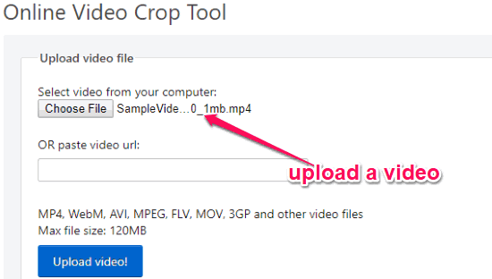 Video Crop Tool (by Ezgif) is one of the best free websites that can be used to crop videos online. You can simply choose any video, select an area on the video, and then it will automatically crop the video. Apart from cropping video, this website comes with many other useful tools to rotate video, trim, convert, reverse, and much more.