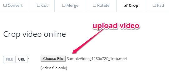 Video Cropping Tool (by AConvert) is another online video cropper that you can use to easily crop videos for free. You can choose any video from your PC and then manually set the crop values like width, height, etc. to crop the video. This website also exhibits other tools that can be used to merge videos, rotate, cut, convert, and do more with videos.