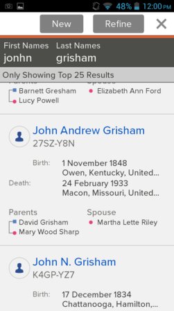 Family Tree is a very simplistic app, which doesn’t have a records database. It’s just a family tree maker.