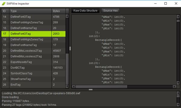 SwfModify is a very easy to use flash decompiler software for Windows 10. It’s a nice cross between JPEXS and SWFWire. When you load a SWF into the application you can start decompiling it using two methods, but only one of them worked for me.