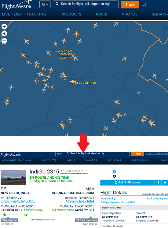 To see the live air traffic, you don’t have to create an account. You can either see the overall air traffic and then analyze that. Or, you can enter a specific flight number to track that flight. By default, they all show you the real-time air traffic. Alternatively, you can click on any flying plane to see the corresponding details. However, in the free plan, some of these websites only let you see the air traffic for 30 consecutive minutes. After that, you will have to refresh the browser tab to see the data again.