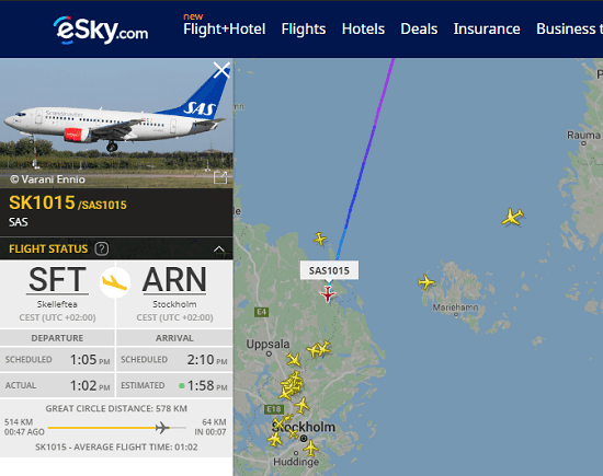 eSKy.com is the last free website in my list which you can use to view and track live air traffic. However, here again you can only see the live traffic for 30 minutes only. After that it removes your session and you will have to refresh the browser tab. There is an interactive map on this website which you can use to see the air traffic and movement of planes. You can select any plane and see the information about a specific flight. It can show you some basic flight information like location of the plane, departure time, arrival time, plane name and many others.