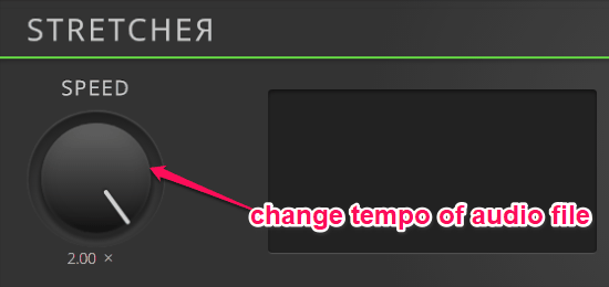 TimeStretch is probably of the best free online tempo changer which can assist you to change the tempo of audio files without disturbing the original pitch. You can simply select an audio file from your PC and rotate the “Speed” dial to change the tempo of that audio file. Apart from letting you change the tempo of audio files, it also comes with the options to shift the pitch of audio files, loop specific audio parts, fine tune, and volume of audio files. It supports different file formats such as MP3, OGG, WAV, etc.