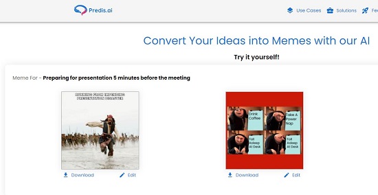 Let us now move on to the next AI-based meme generator that enables you to craft eye-catching memes by simply typing your ideas. Use the link that we have provided below to navigate to Predis.