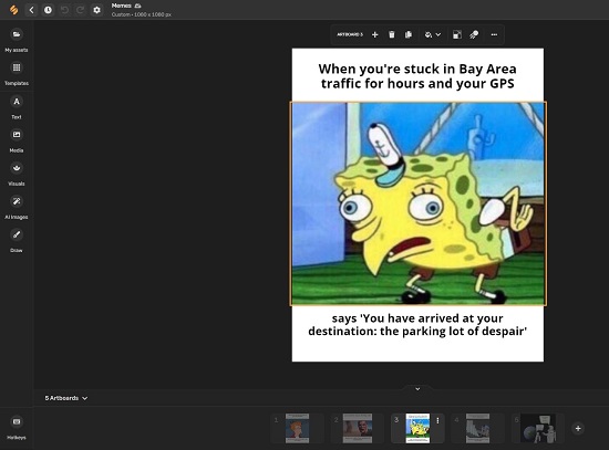 Now, just wait for a few seconds while the AI of Simplified generates the memes for you that are tailored based on your inputs. Click on the ‘Export’ button towards the top right of the workspace to save the meme image or video format including GIF. Additionally, you can use the tools in the left-side panel to customize the meme if required.